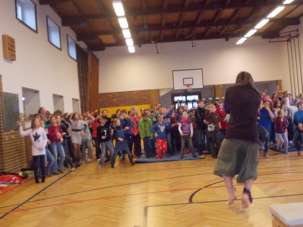 Wir spielen mit selbstgemachten Handpuppen unsere eigenen Texte.